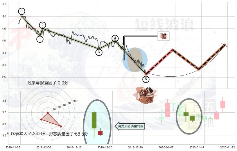 ➢ 【卖1】: 激进型 卖点→(2020-01-23: 3.630 )形成突破下降三角形整理【整理】形态