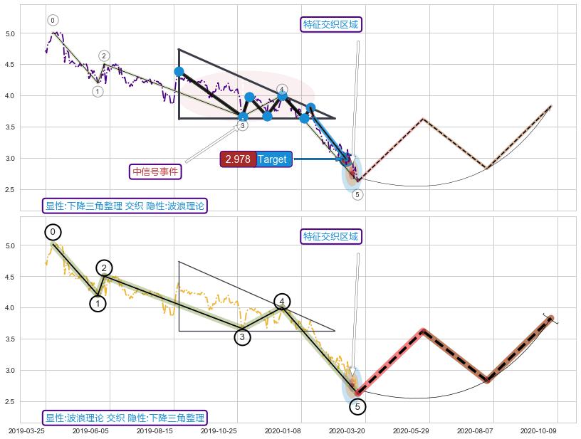 ➢ 下降三角整理属【中级别信号事件】波浪理论属【长级别信号事件】中长周期组合信号事件,中长事件长度比44.58%