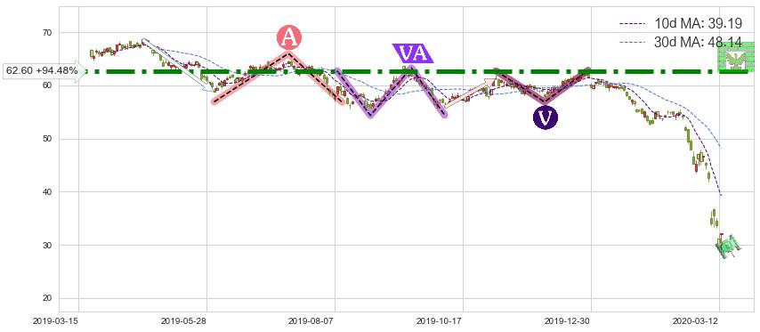 ♘ 阻力价格位62.60,可信任强度90.41%,距离最后交易2020-03-13形成的收盘价格32.19相差 +94.48%