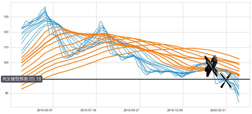 ➣ 80小时均线于(2020-01-28: 95.36)形成【死叉】基于【死叉历史模型】预测死叉后最低波谷价格: 87.58, 死叉后最低价格68.98,已经下跌超出预测最低波谷价格, 预期反弹