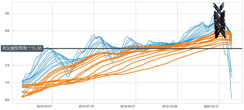 ➢ 80小时均线于(2020-02-24: 124.79)形成【死叉】基于【死叉历史模型】预测死叉后最低波谷价格: 116.31, 死叉后最低价格96.34,已经下跌超出预测最低波谷价格, 预期反弹