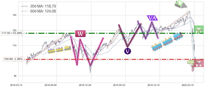 ♘ 阻力价格位117.93,可信任强度82.71%,距离最后交易2020-03-13形成的收盘价格102.30相差 +15.28%