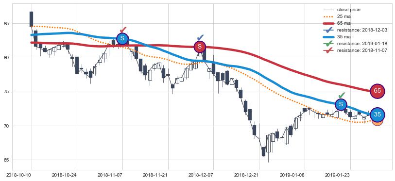 ➢ 最优均线组合共正确确认支撑阻力信号6处,正确确认率 75.00%