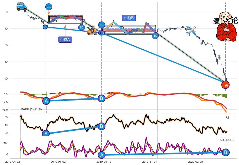 ➣ 【已完成】缠论 起点:2019-04-23,完成第1中枢A,完成第2中枢B,终点:2020-03-12,缠论共225交易日