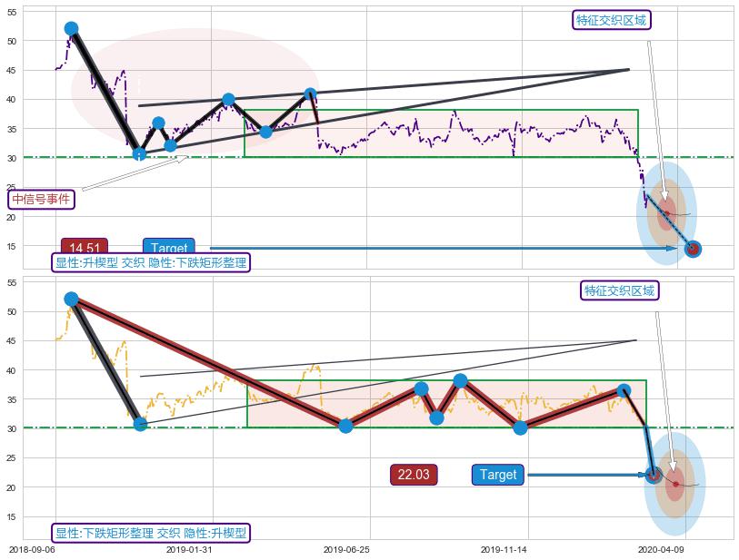 ➢ 升楔型属【中级别信号事件】下跌矩形整理属【长级别信号事件】中长周期组合信号事件,中长事件长度比43.72%