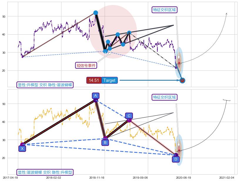 ➢ 升楔型属【短级别信号事件】谐波蝴蝶属【长级别信号事件】长短周期组合信号事件, 短长事件长度比22.54%