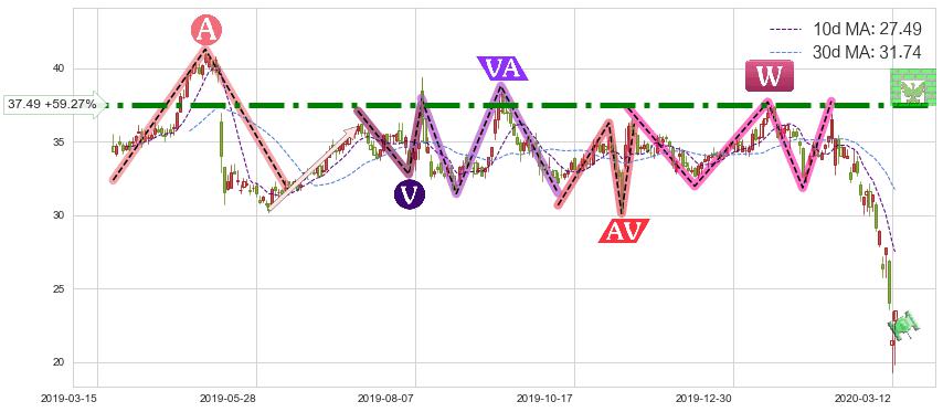 ♘ 阻力价格位37.49,可信任强度95.76%,距离最后交易2020-03-13形成的收盘价格23.54相差 +59.27%