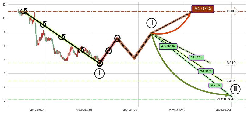 ➢ 循环浪继续向下【最高】位置(2021-02-09, 3.510),匹配聚类样本比例25.45%, 可能性概率11.69%