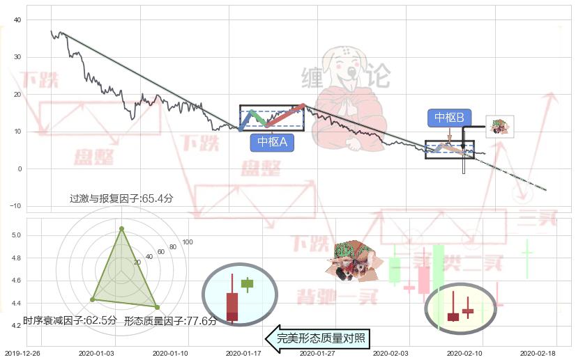 ➢ 【中枢B】:2019-12-23-2020-02-05,中枢由3笔构成,共30交易日, ZG=6.30, ZD=4.77
