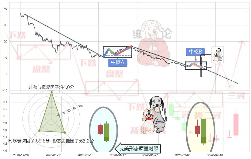 ➢ 🕰 价格走势在2020-01-23至2020-01-23期间形成下降插入线(坠落线),残存影响值:-4.74