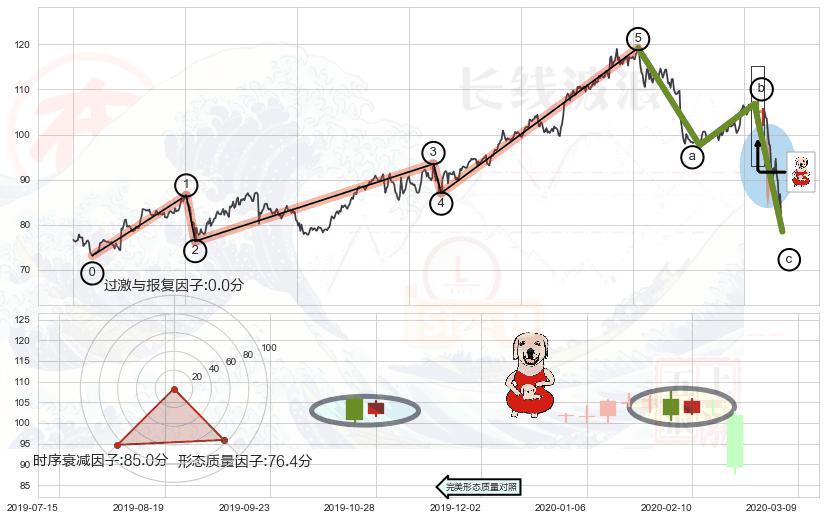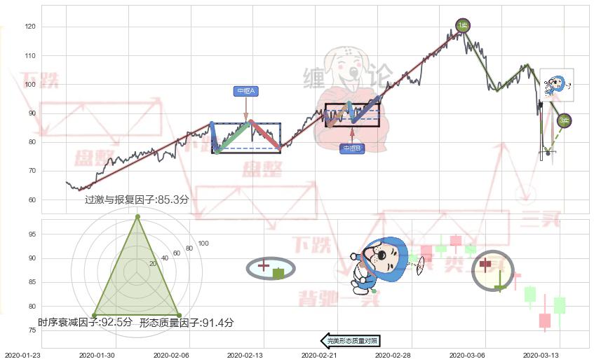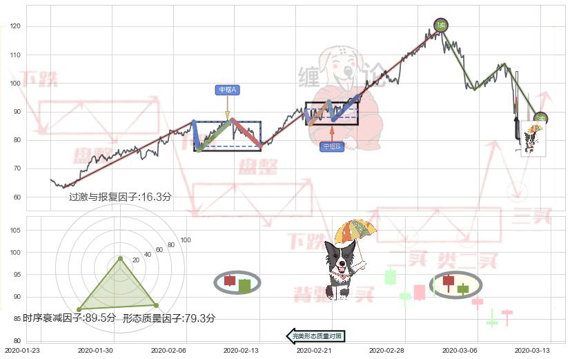 ➢ 🕰 价格走势在2020-03-10至2020-03-11期间形成吊颈线(上吊线),残存影响值:-4.63