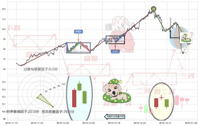 ➢ 🕰 价格走势在2019-12-26至2019-12-30期间形成黄昏之星(夜星),残存影响值:-1.48