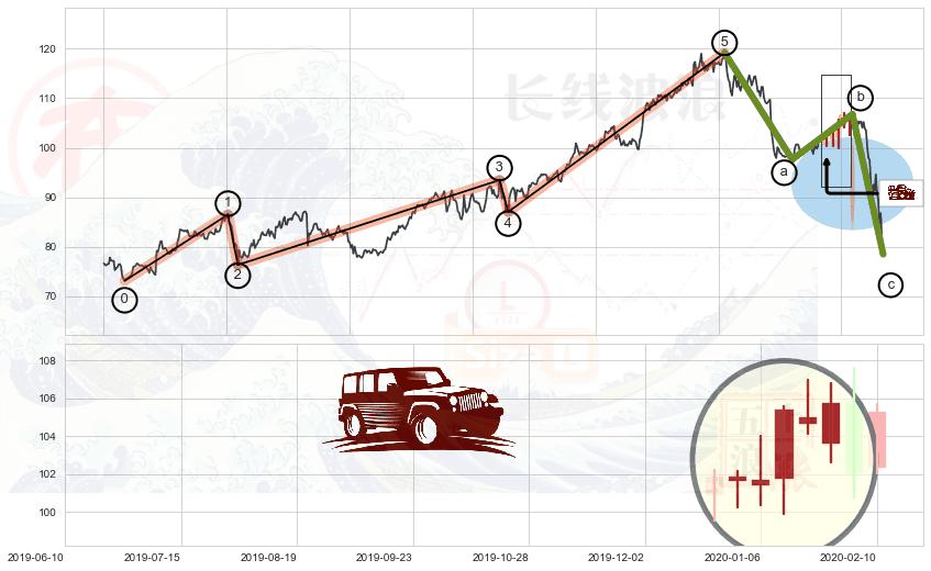 ➣ 波浪理论:猜想击穿破位c点后继续下跌 → 下跌 → 风险信号 → 小趋势跟踪