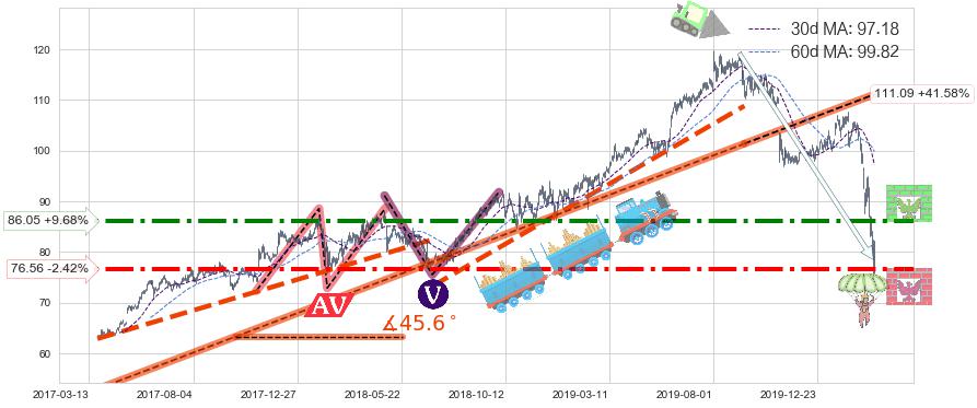 ♘ 阻力价格位86.05,可信任强度74.92%,距离最后交易2020-03-13形成的收盘价格78.46相差 +9.68%