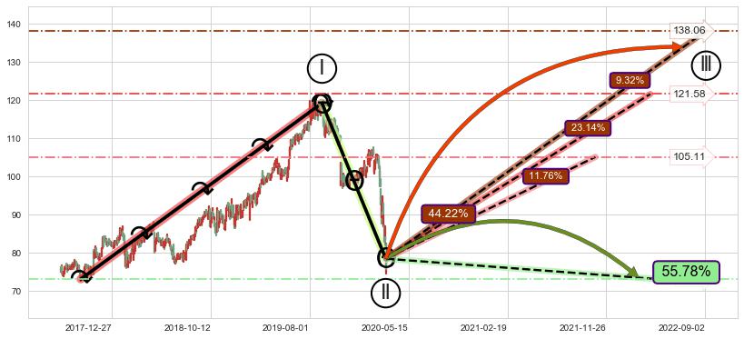 ➢ 大趋势走坏(跌破5浪起点位置)概率55.78%