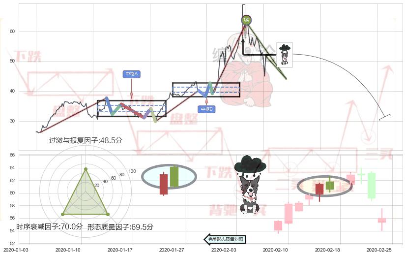 ➢ 🕰 价格走势在2020-01-29至2020-01-30期间形成吊颈线(上吊线),残存影响值:-2.71