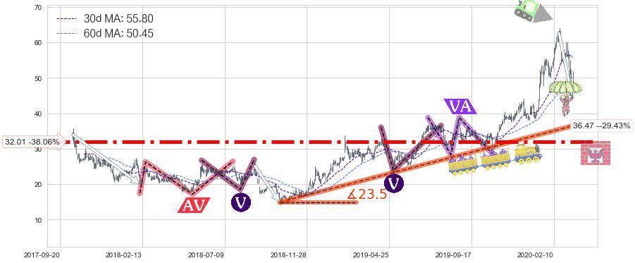 ♘ 支撑价格位32.01,可信任强度94.25%,距离最后交易2020-03-13形成的收盘价格51.68相差 -38.06%