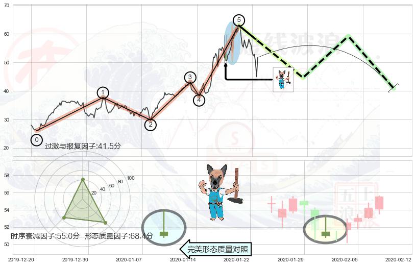 ➢ 下跌螺旋桨 🔜 波浪理论上涨浪:浪5回调拐点 综合量化分数:46.71 【中性】