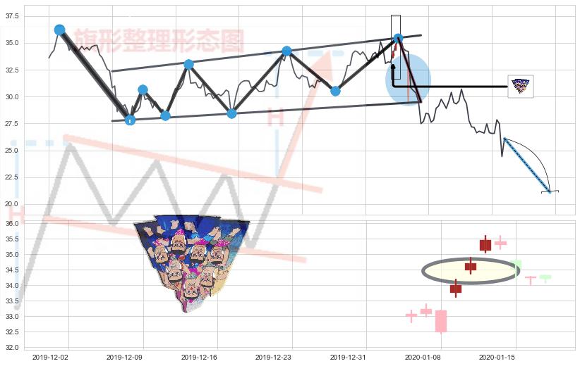 ➢ 🕰 价格走势在2020-01-06至2020-01-21期间形成黄昏之星(夜星),残存影响值:-6.21