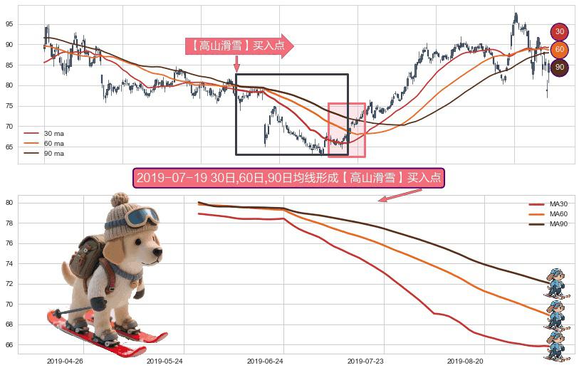 形态多维评估: ⚀ 2019-05-30日-2019-09-09日显现 30日-60日-90日均线 【高山滑雪】买入点 看多信号,后市看涨,买入