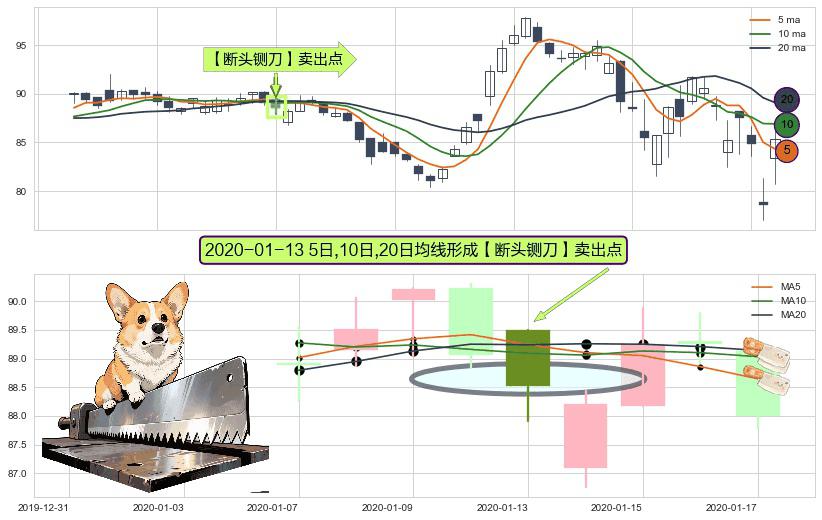 形态多维评估: ⚀ 2020-01-13日显现 5日-10日-20日均线 【断头铡刀】卖出点 看空信号,后市看跌,卖出