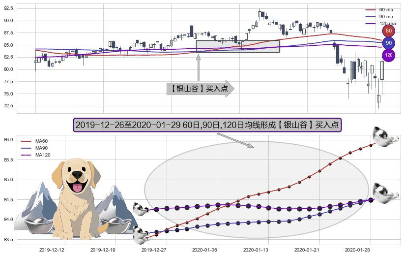 ⚀ 2019-12-27-日至2020-01-29-日显现 60日-90日-120日均线 【银山谷】买入点 看多信号,后市看涨,买入