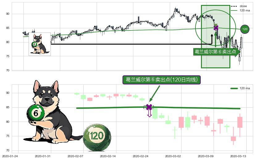 ⚀ 2020-02-24-日显现 葛兰威尔均线 120日均线 第⑥卖出点 走势反转见顶信号,后市看跌,卖出信号
