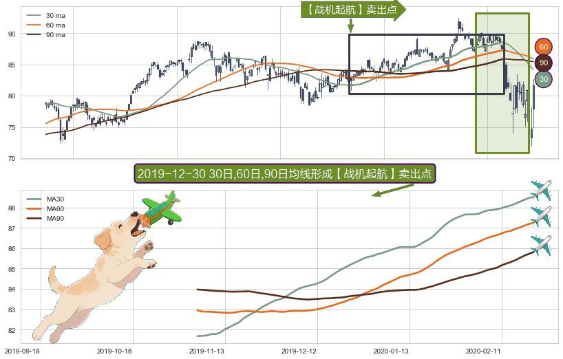 ⚀ 2019-11-05日-2020-02-21日显现 30日-60日-90日均线 【战机起航】卖出点 看空信号,后市看跌,卖出