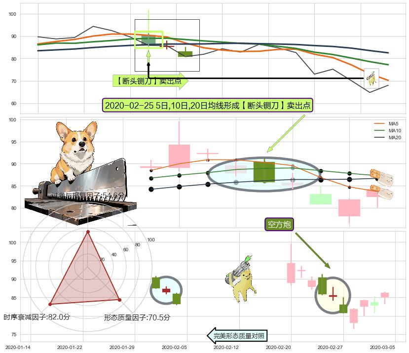 | 3 🅚:空方炮 ➕ 🎢:【绝命跳】卖出点均线组合卖出点信号形成后,猜想后续向下脱离整理形态,持续破位下行 ☞ 看空信号 ⇥ 【均线】交织【🅚线】⇥ 综合量化分数: 49 | > |