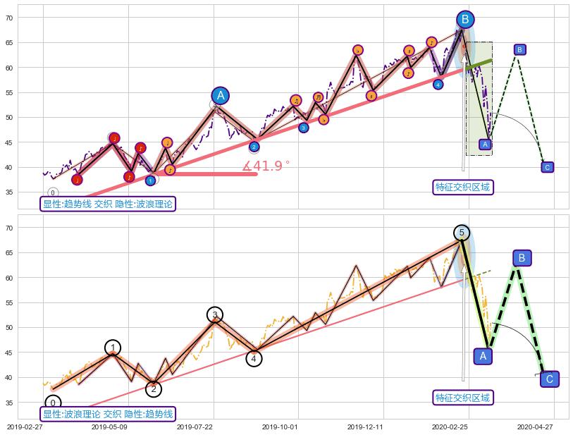 ➢ 最后的上涨趋势2019-03-28至2020-02-21:存在破位迹象,后续小调整或者反转下跌