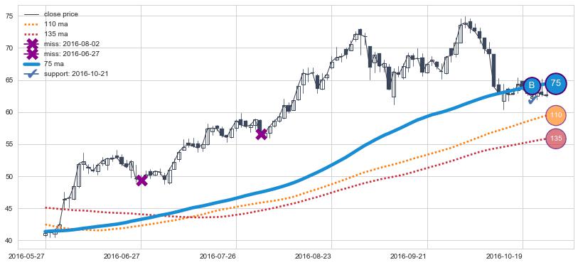 上涨趋势2016-05-27-2016-10-26,均线75确认关键支撑1处
