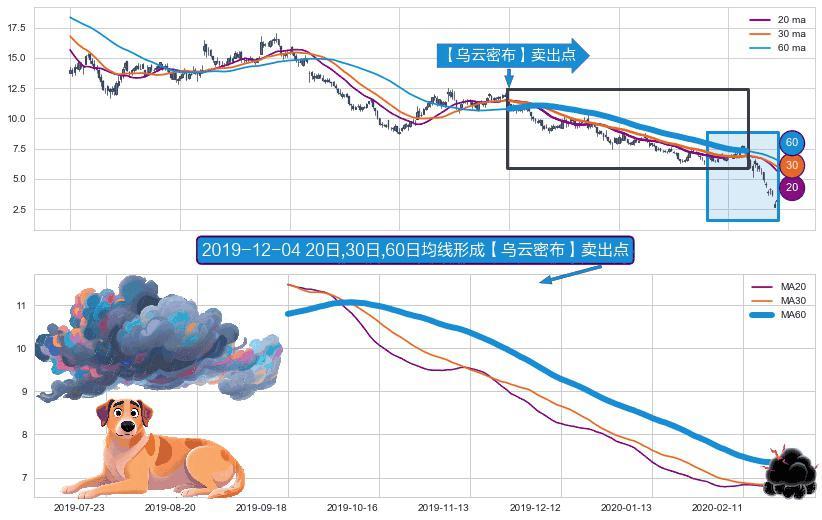 形态多维评估: ⚀ 2019-09-18日-2020-02-24日显现 20日-30日-60日均线 【乌云密布】卖出点 看空信号,后市看跌,卖出