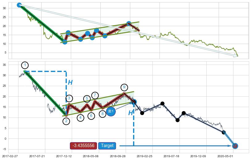 ➣ 最小中继整理跌幅→𝐇: 20.85 (𝐇旗杆的长度:旗杆起点→顶点)