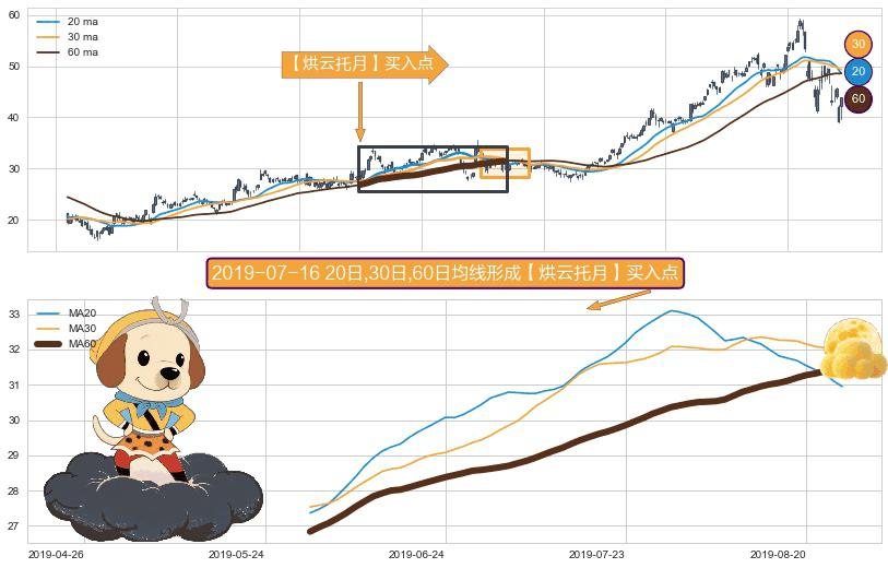 ⚀ 2019-06-03日-2019-08-26日显现 20日-30日-60日均线 【烘云托月】买入点 看多信号,后市看涨,买入