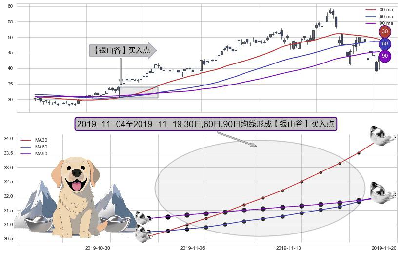 ⚀ 2019-11-05-日至2019-11-19-日显现 30日-60日-90日均线 【银山谷】买入点 看多信号,后市看涨,买入