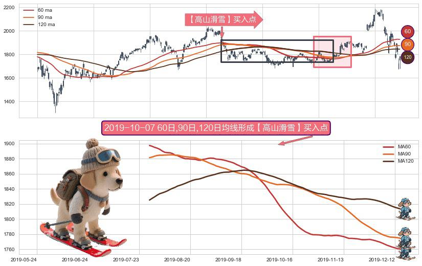 形态多维评估: ⚀ 2019-07-29日-2019-12-16日显现 60日-90日-120日均线 【高山滑雪】买入点 看多信号,后市看涨,买入
