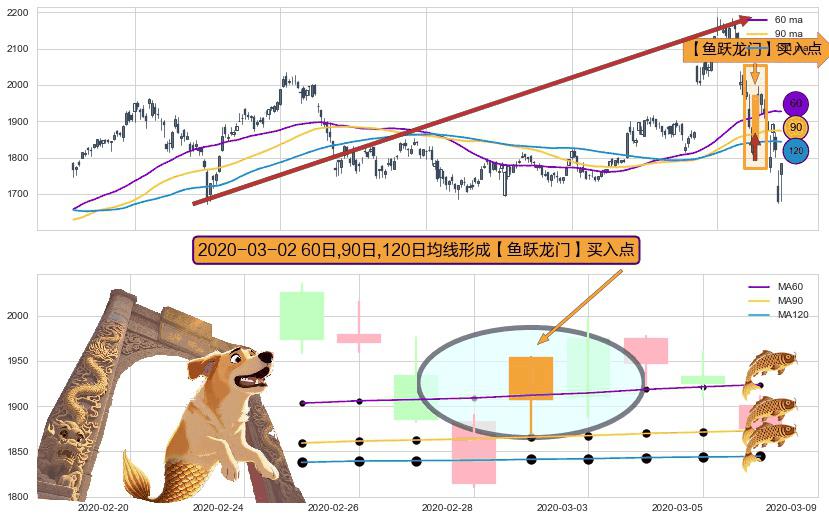 形态多维评估: ⚀ 2020-03-02日显现 60日-90日-120日均线 【鱼跃龙门】买入点 看多信号,后市看涨,买入