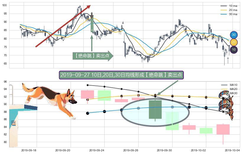 ⚀ 2019-09-27日显现 10日-20日-30日均线 【绝命跳】卖出点 看空信号,后市看跌,卖出