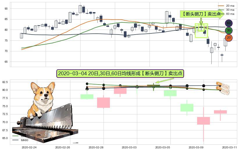⚀ 2020-03-04日显现 20日-30日-60日均线 【断头铡刀】卖出点 看空信号,后市看跌,卖出