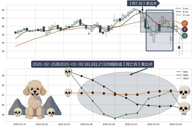 形态多维评估: ⚀ 2020-02-26-日至2020-03-09-日显现 3日-8日-21日均线 【死亡谷】卖出点 看空信号,后市看跌,卖出