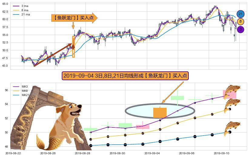 形态多维评估: ⚀ 2019-09-04日显现 3日-8日-21日均线 【鱼跃龙门】买入点 看多信号,后市看涨,买入