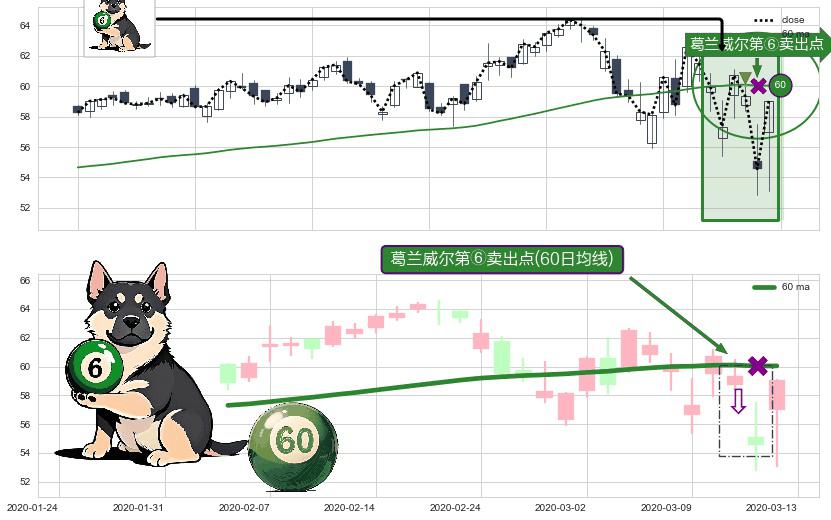 形态多维评估: ⚀ 2020-03-11-日显现 葛兰威尔均线 60日均线 第⑥卖出点 走势反转见顶信号,后市看跌,卖出信号