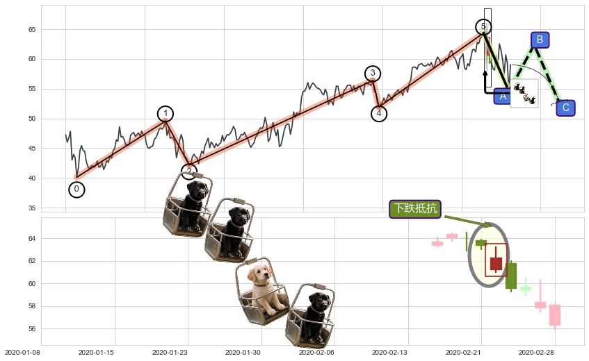 | 5 🅚:升势受阻 ➕ 🌊:波浪理论猜想上涨浪5已形成,猜想后续形成回调abc下跌(均值回复) ☞ 看空信号 ⇥ 【🅚线】交织【图形】⇥ 综合量化分数: 41 | > |