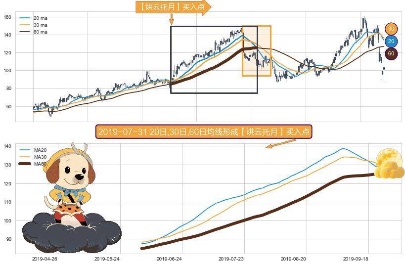 ⚀ 2019-06-05日-2019-09-25日显现 20日-30日-60日均线 【烘云托月】买入点 看多信号,后市看涨,买入