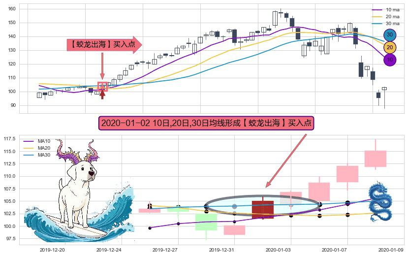 ⚀ 2020-01-02日显现 10日-20日-30日均线 【蛟龙出海】买入点 看多信号,后市看涨,买入