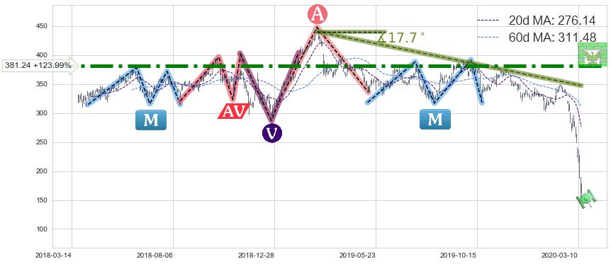 ♘ 阻力价格位381.24,可信任强度99.00%,距离最后交易2020-03-13形成的收盘价格170.20相差 +123.99%