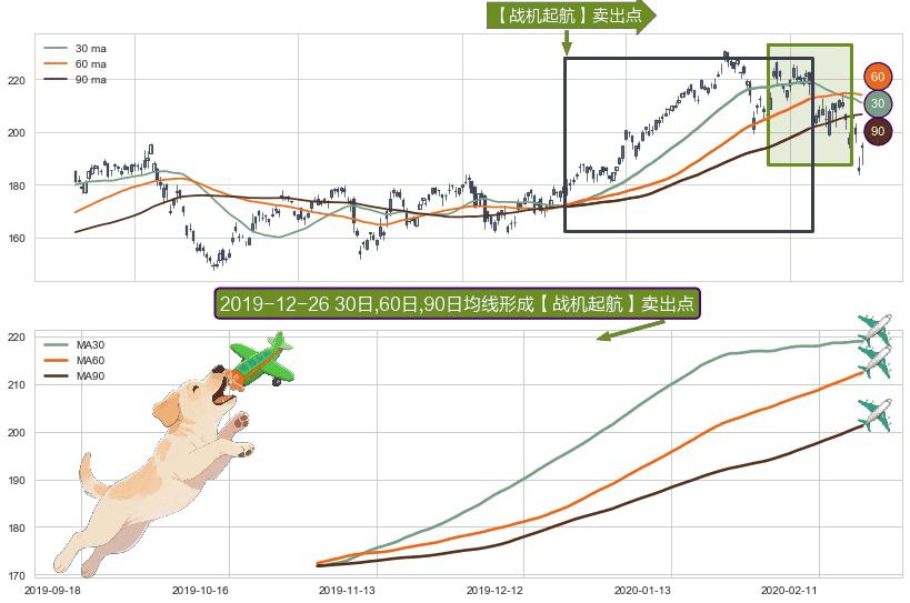 ⚀ 2019-11-01日-2020-02-20日显现 30日-60日-90日均线 【战机起航】卖出点 看空信号,后市看跌,卖出