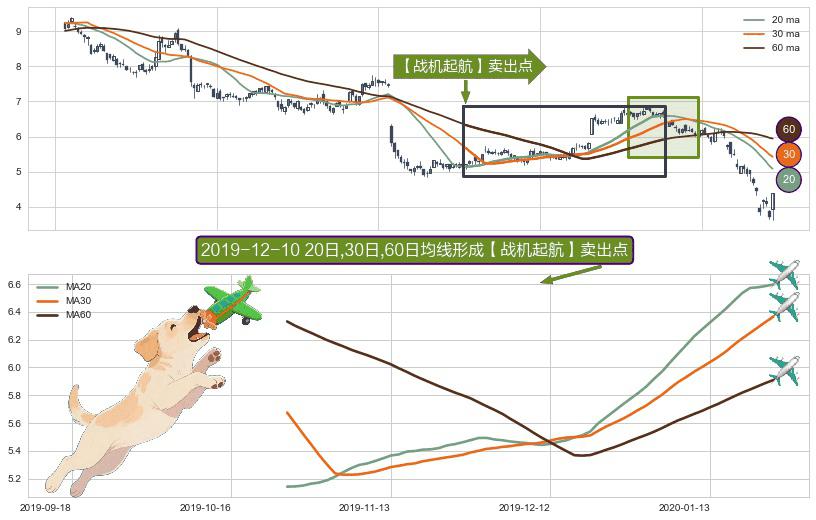 形态多维评估: ⚀ 2019-10-25日-2020-01-24日显现 20日-30日-60日均线 【战机起航】卖出点 看空信号,后市看跌,卖出