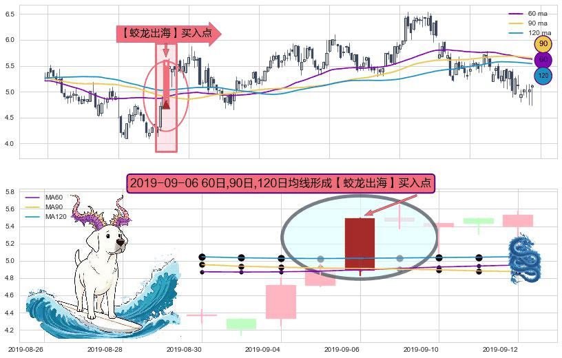 ⚀ 2019-09-06日显现 60日-90日-120日均线 【蛟龙出海】买入点 看多信号,后市看涨,买入