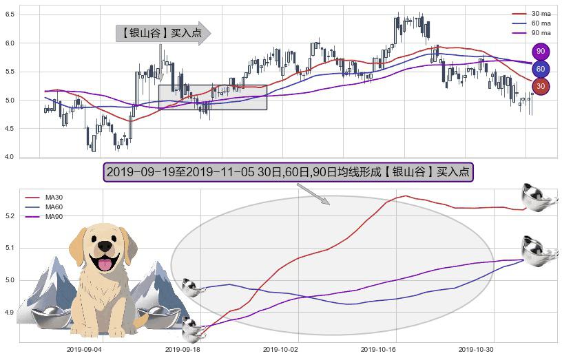⚀ 2019-09-20-日至2019-11-05-日显现 30日-60日-90日均线 【银山谷】买入点 看多信号,后市看涨,买入